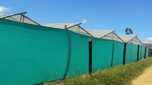 En una tela tejida con fibras de polipropileno utilizada para todo tipo de cerramiento y